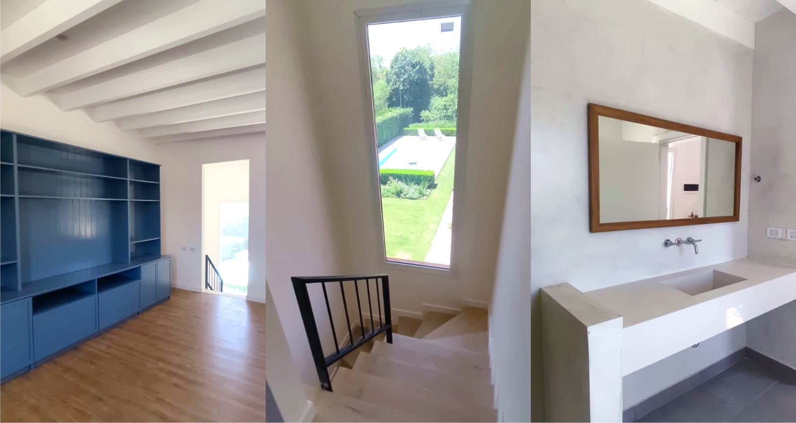 La obra AB consistió en una ampliación de vivienda unifamiliar ubicada en el barrio cerrado Lomas del Carmen, en la ciudad de Pergamino. El encargo contempló la ejecución de un nuevo sector conformado por un dormitorio, un baño completo, un playroom y una escalera que vincula esta expansión con la planta baja existente.