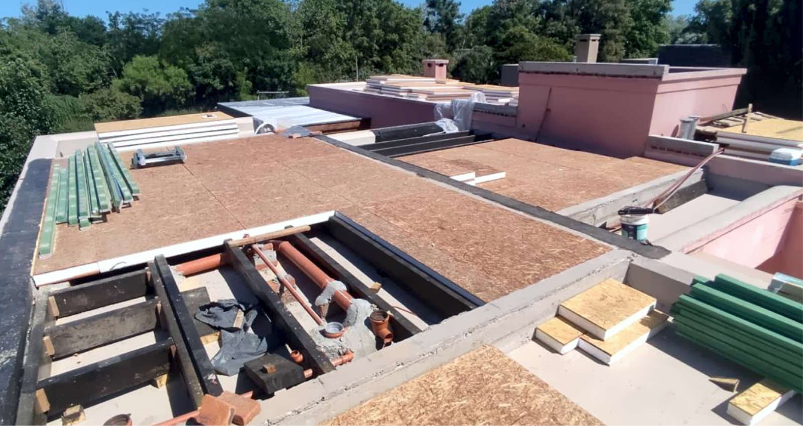 Otro aspecto singular fue el ocultamiento total de la cubierta, generando un volumen limpio, con líneas modernas y sin elementos sobresalientes a la vista.