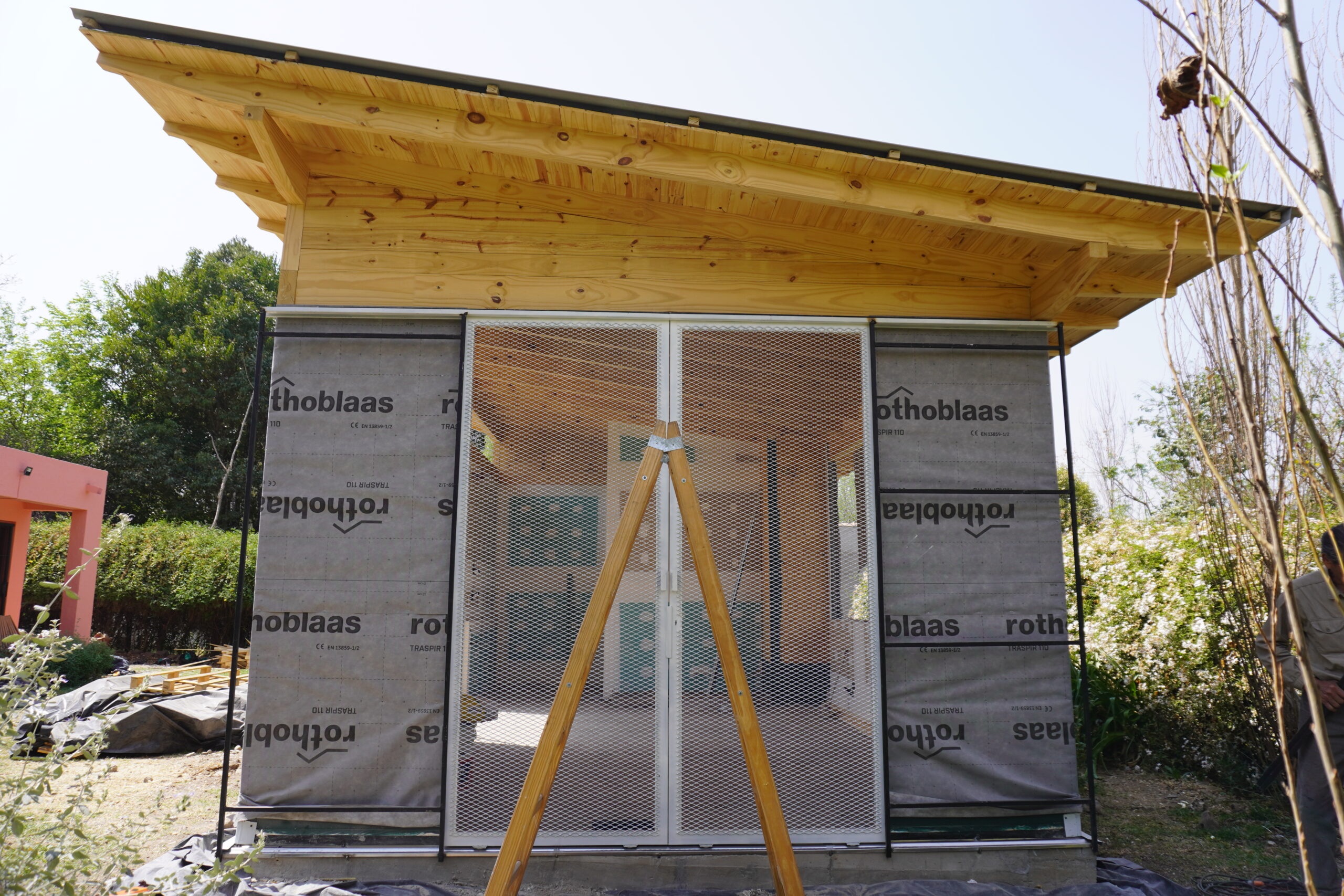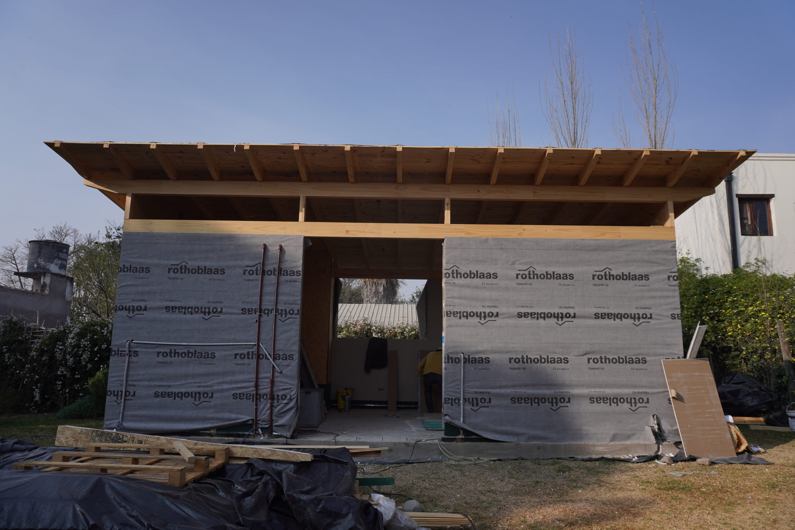 La obra desde su génesis, se conceptualizó y moduló, para ser construida con paneles SIP. La materia prima principal del sistema es la madera. Material protagonista en la conformación de la cubierta, encastres, cerramientos, carpinterías y terminaciones.